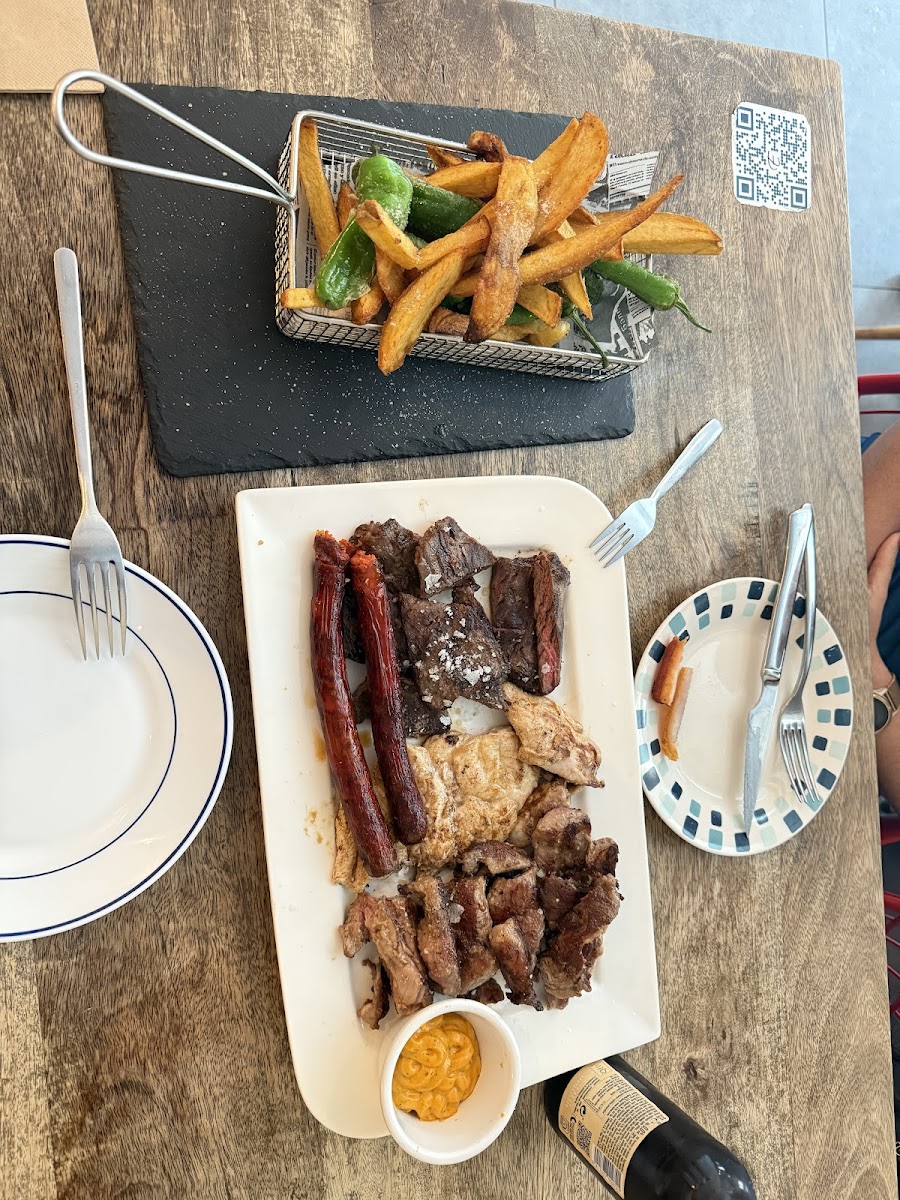 Entrecot with fries and beer. 25 Euro. Meat was chewiee. Friendly staff.